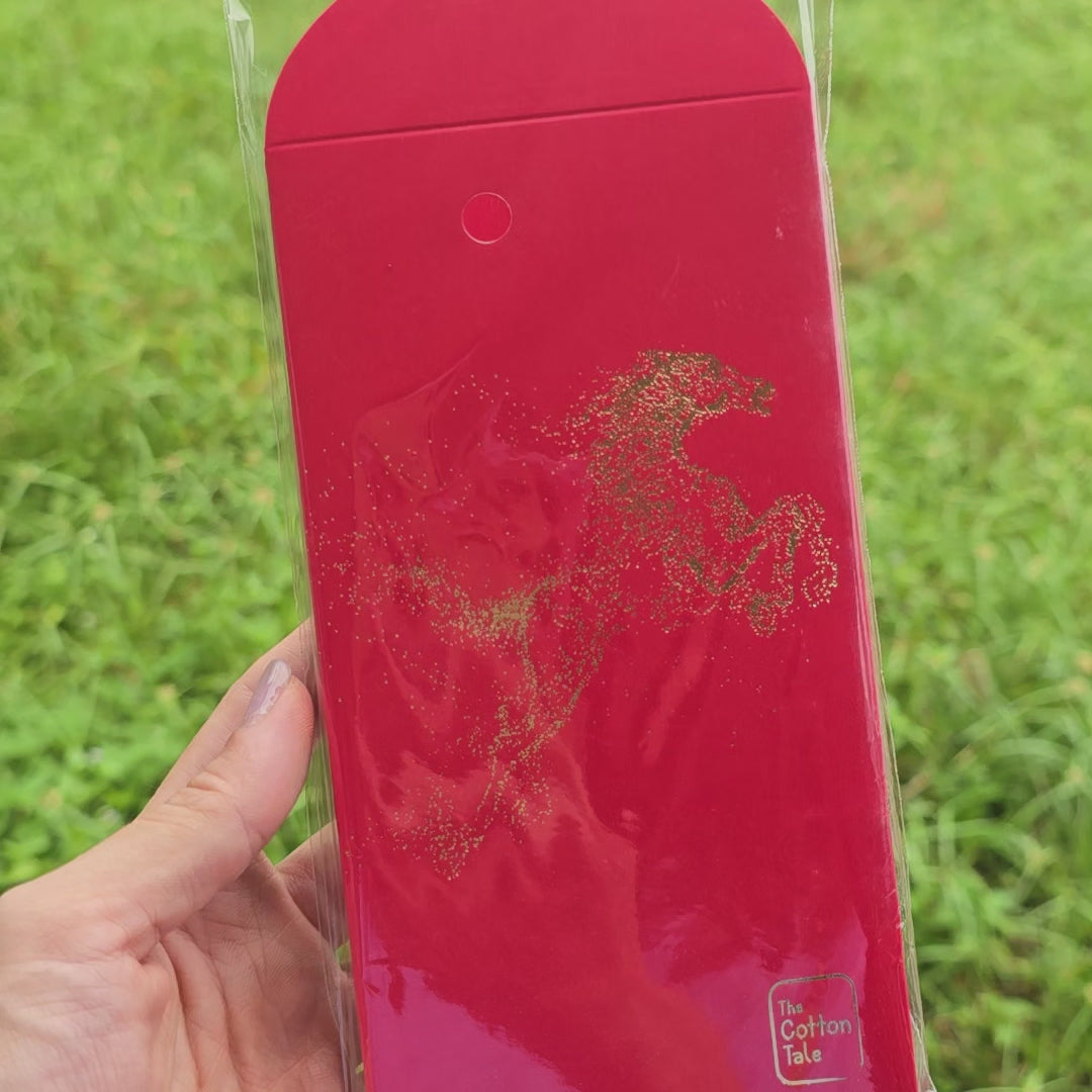 One design showcases a galloping stardust horse, symbolising strength, progress, and a spirited start to the new year. It comes in two rich festive tones — classic red and a deep maroon-purple.