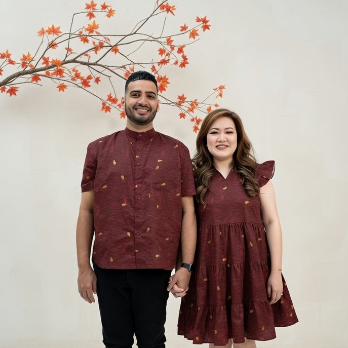 Designed for relaxed comfort with a refined finish, this men’s shirt is crafted in a modern oversized silhouette with a mandarin collar, offering breathable ease and effortless festive dressing.